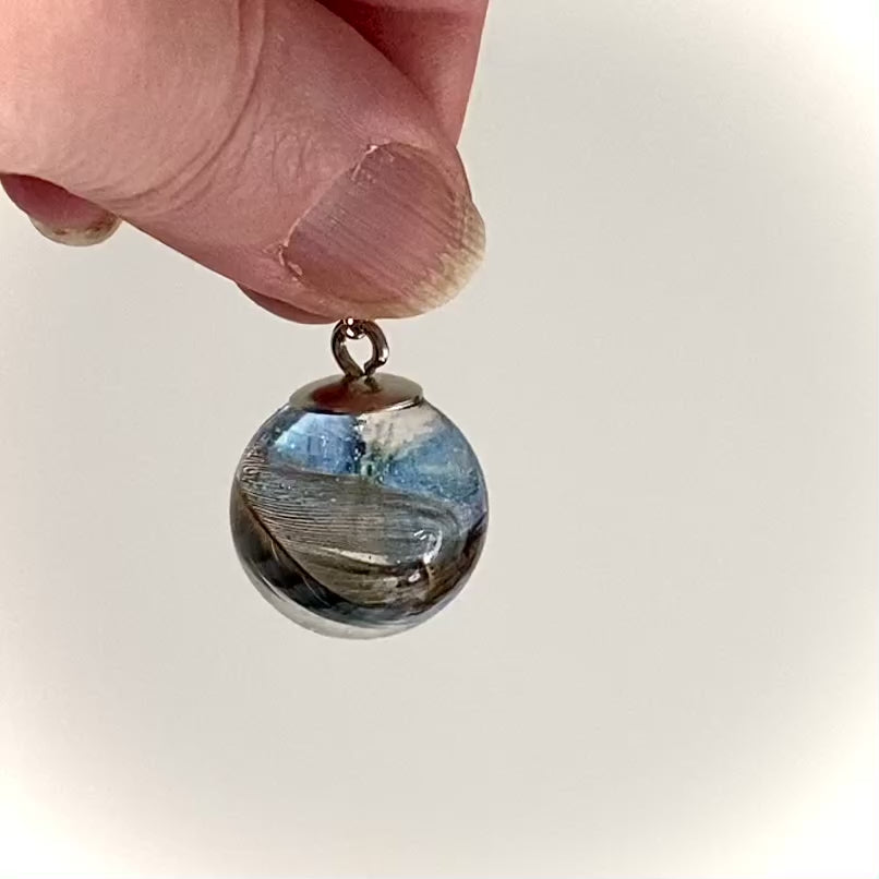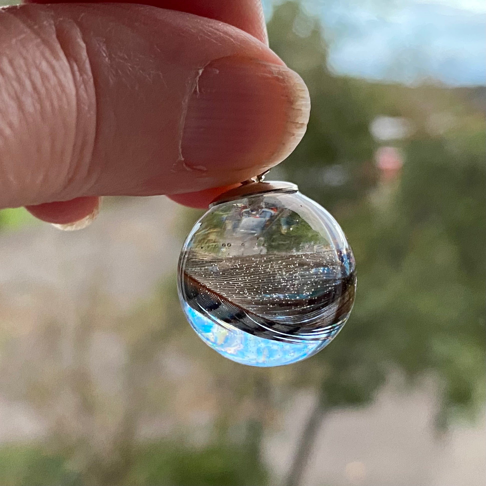 This enchanting pendant captures the spirit of a bright blue jay in flight — a symbol of clarity, confidence, and joy. Real blue feather are paired with a delicate butterfly detail, each preserved in crystal-clear resin and set within a polished bezel.