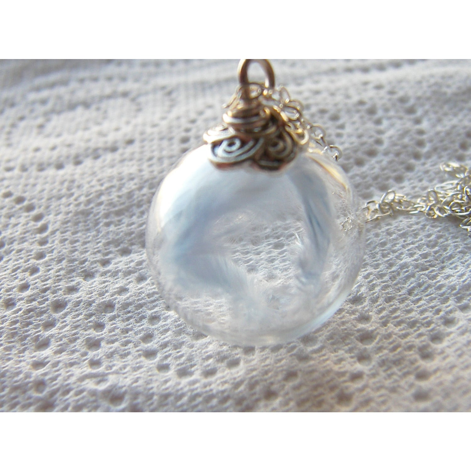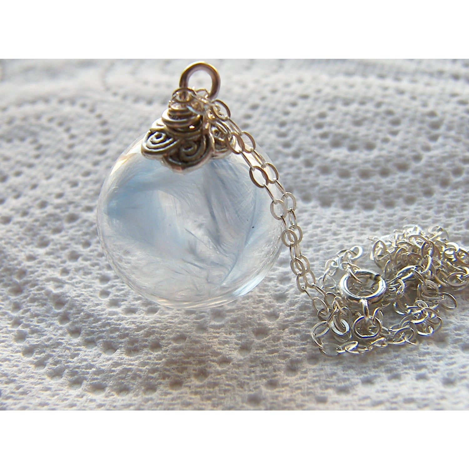 Description: I have very carefully hand filled this Beautiful hand blown glass hollow bead, measures approx 20mm x 20mm with 2 tiny soft fluffy blue marabou feathers and attached vintage style cab to the top, hangs from 18" 925 sterling silver chain