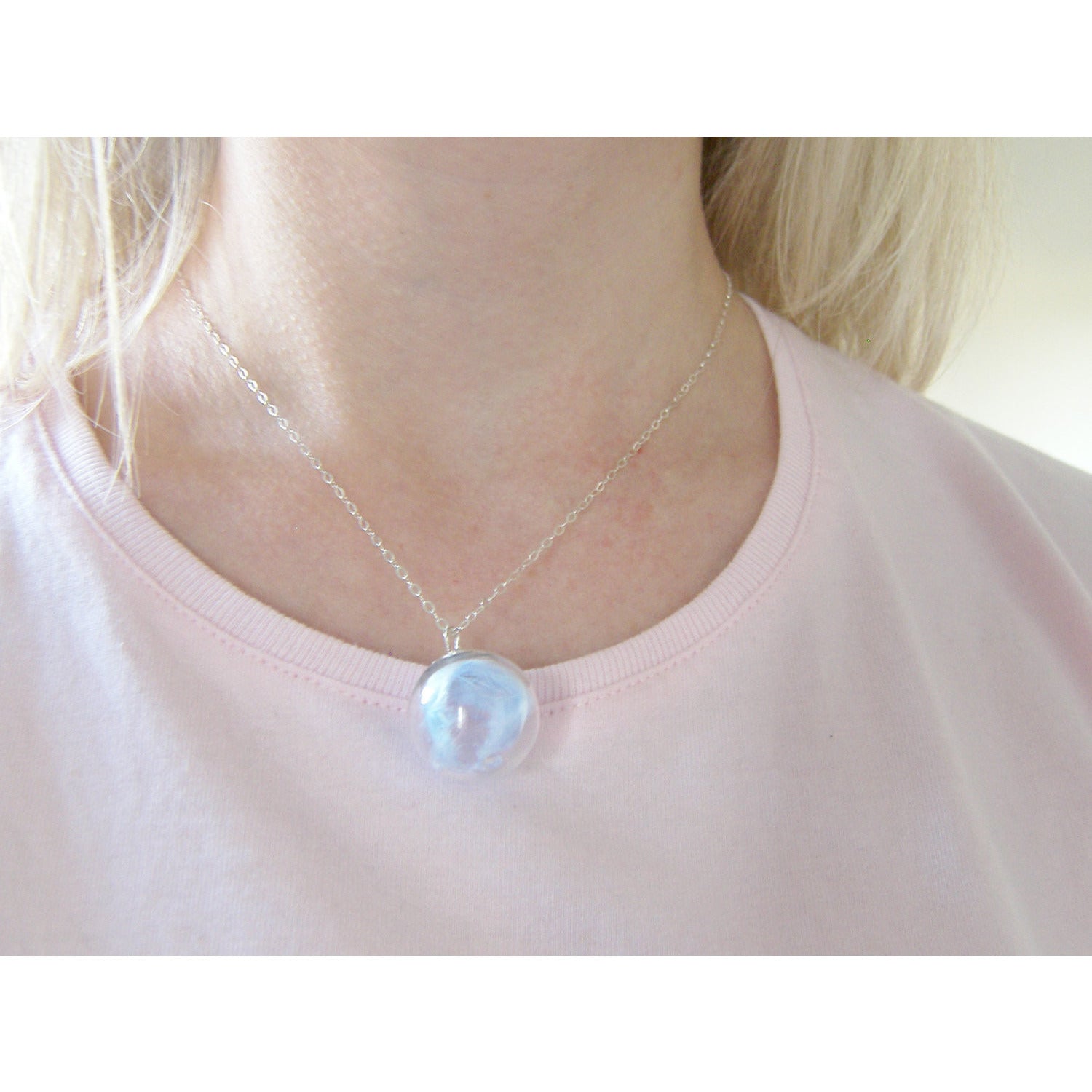 New Mother Necklace, Mom Necklace, Baby Boy, Mom To Be, Blue Marabou Feathers, Glass Globe