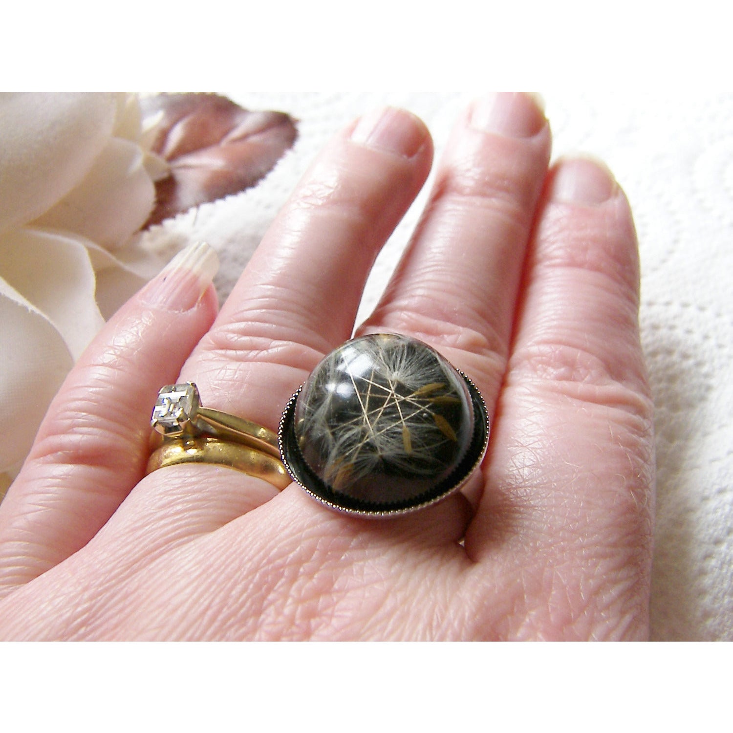 Real Dandelion Seeds Ring, Black Resin Ring, Nature Specimen, Make a Wish, Eco Friendly